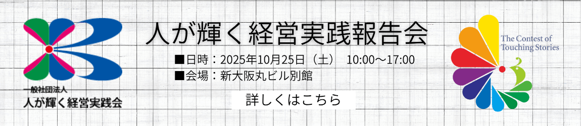 人が輝く経営実践会は理念にある通り、『人を大切にする経営』の学びと実践を通じて、『何かで日本一、世界一』実現を『志高い仲間』と共に目指しています。